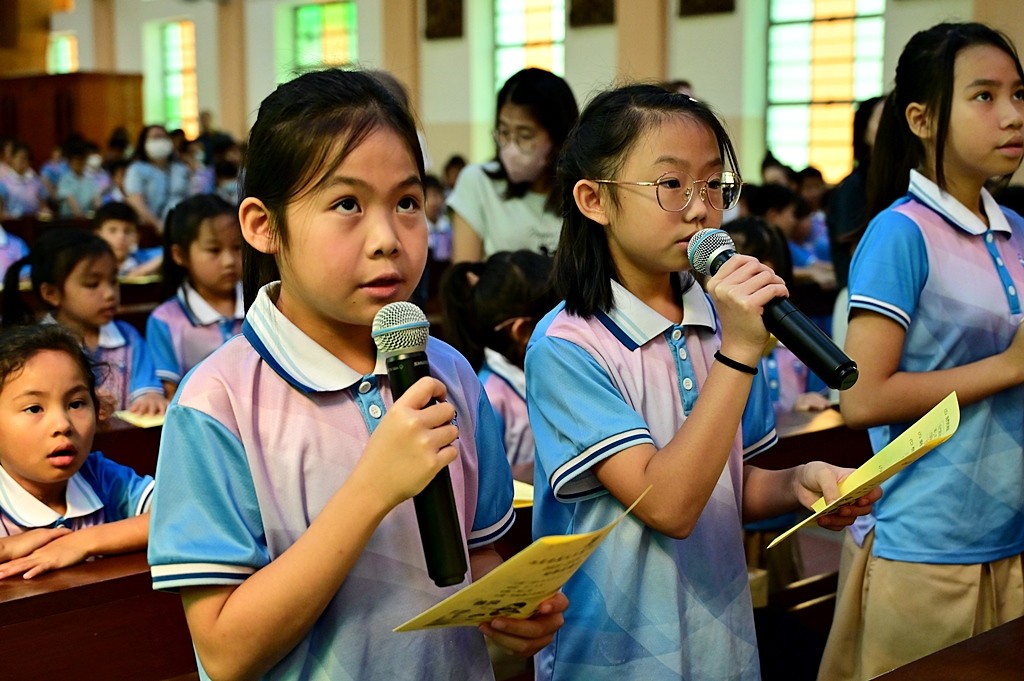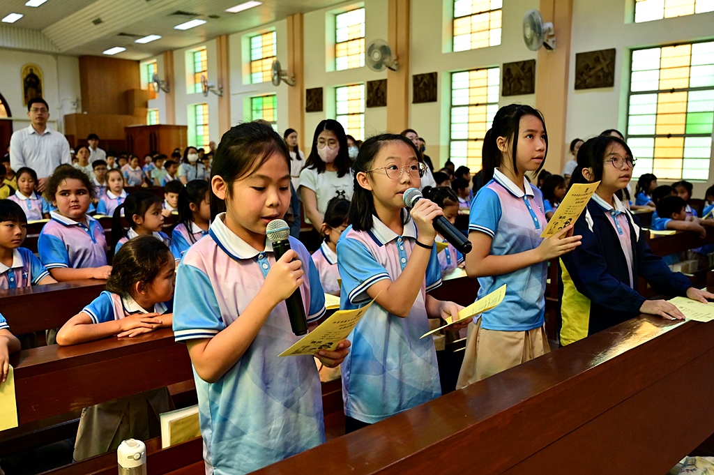 全體學生在祈禱會中向上主承諾,除了努力學習外,更會主動關心家人和身邊的每一個人。