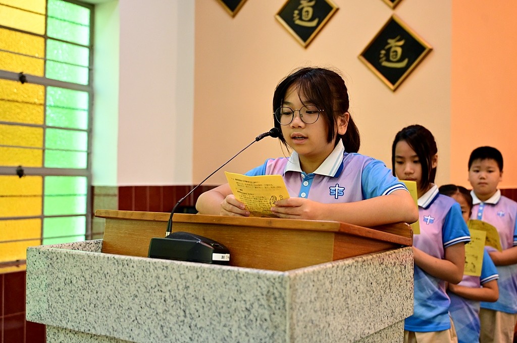 The theme of learning in this school year is Be Kind. The Bible reading for the day was from the story of the Good Samaritan. Principal Fung encouraged students to be kind and considerate of those in need, even their enemies, in their daily lives. When facing anger situations, we should first let go of our anger and reflect calmly.