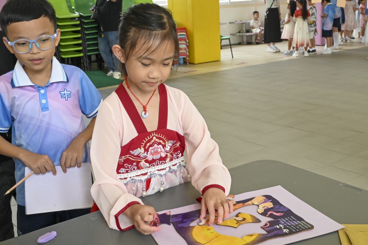 本校於十月六日圓滿舉行「月滿崇真慶中秋」跨學科學習活動,讓學生透過一系列豐富多彩的節慶體驗,歡度中秋佳節,深入認識祖國源遠流長的傳統節日文化。當天活動內容豐富,包括師生互動猜燈謎、巧手製作燈籠,以及多個融合中秋文化元素的攤位遊戲。校園處處洋溢歡聲笑語,節日氣氛濃厚。同學們踴躍參與,全情投入,在輕鬆愉快的氛圍中展現創意與學習熱忱,深刻感受到傳統文化的深厚底蘊與獨特魅力。