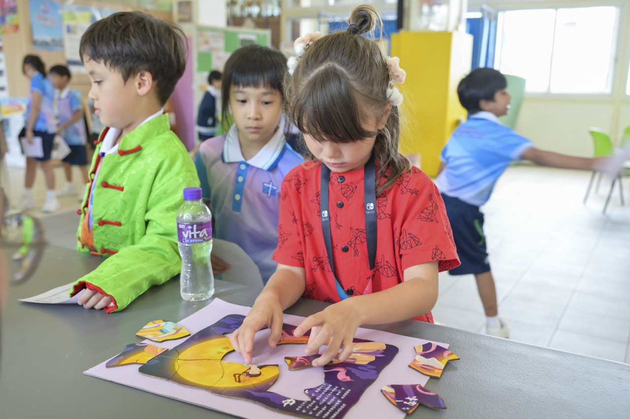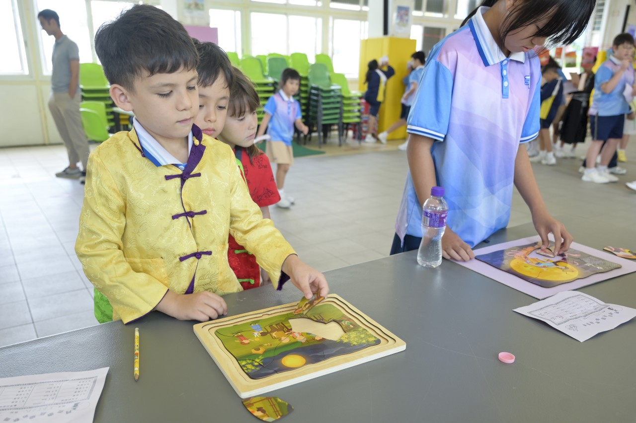 Our school successfully held the Mid-Autumn Festival celebration on 6th October. The event provided students with a series of diverse and engaging activities, allowing them to celebrate joyfully while gaining a deeper understanding of this long-standing traditional Chinese festival. The day was filled with a rich variety of events, including riddle-solving, lantern-making, and multiple booth games infused with Mid-Autumn cultural elements. The campus was alive with laughter and joy, creating a vibrant festive atmosphere. The students participated with great enthusiasm, fully immersing themselves in the experience. In this relaxed and enjoyable environment, they showcased their creativity and passion for learning, profoundly experiencing the depth and unique charm of traditional culture.