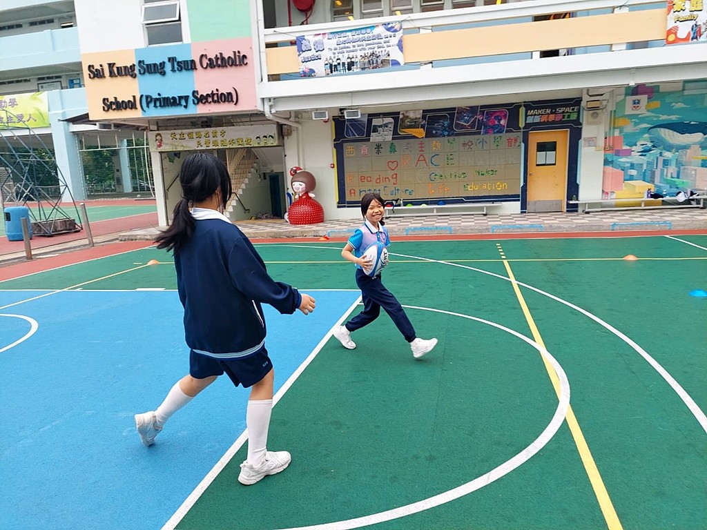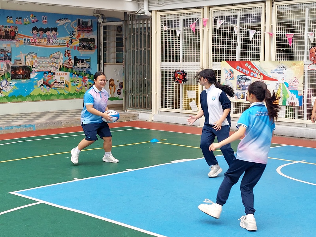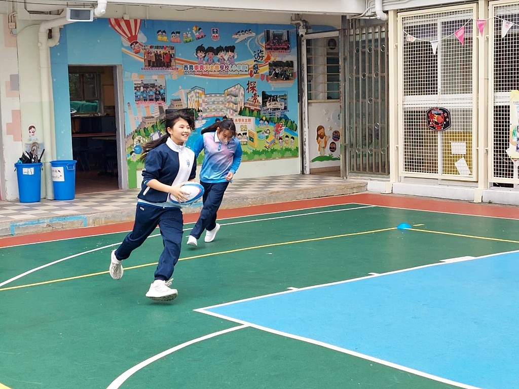 四至五年級的同學有機會參加欖球總會舉辦的欖球體驗課,同學們都玩得很開心呢!