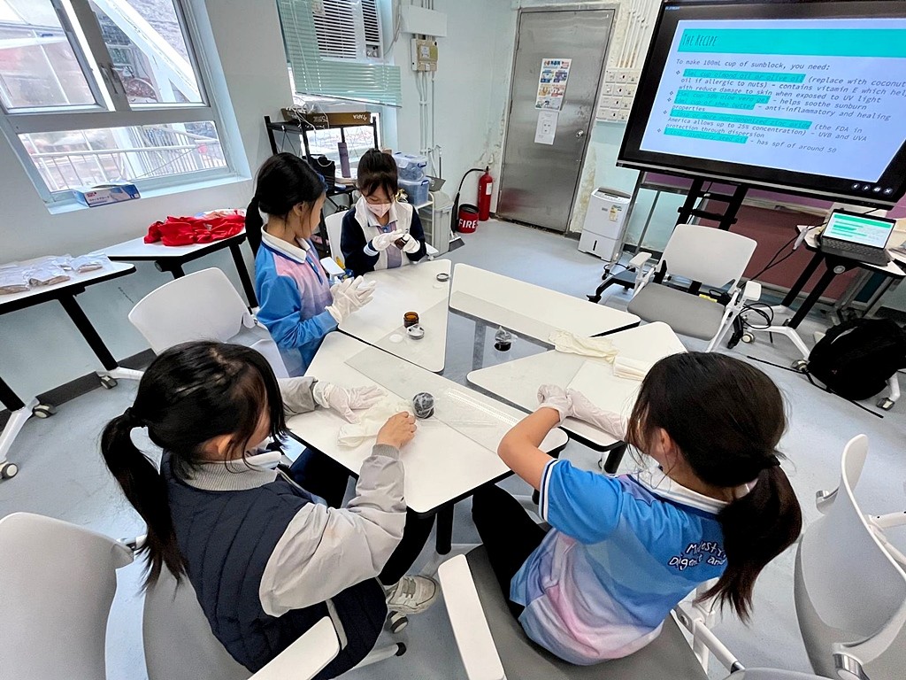 在2月中的課程裡,學生學習製作海洋環境友善產品–太陽油。學生稍後亦會有海洋⽣態系統與保護 –淨灘活動及⿂類標本介紹及製作。藉此提升學生對海洋生態環境保育的意識。