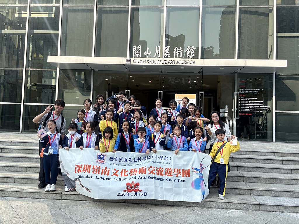 為鼓勵學生認識國家歷史和文化,了解國家發展現況、將來發展的藍圖及國家的藝術發展,提高學生對於祖國的身份認同及對藝術的熱愛。學校為學生安排了「深圳嶺南文化藝術交流遊學團」,到訪深圳姊妹學校-新蓮小學作藝術交流,並到關山月美術館、大芬村美術館參觀,還到大芬油畫村分組進行繪畫塑膠彩畫及陶藝活動體驗