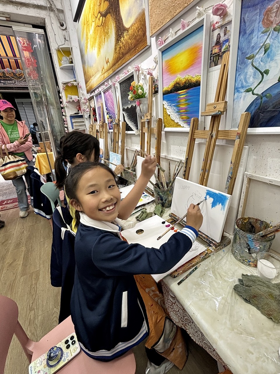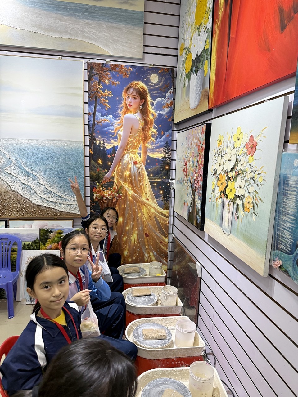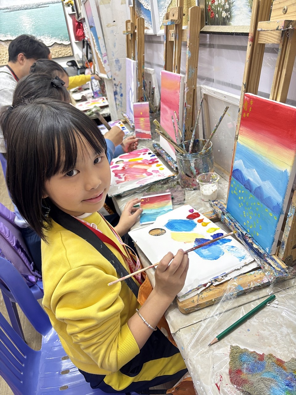 To deepen students' understanding of national history, culture, and contemporary development, the school organized the "Shenzhen Lingnan Cultural and Artistic Exchange Study Tour." This initiative aimed to strengthen students' national identity and passion for the arts. During the tour, students visited our sister school, Xinlian Primary School, for an artistic exchange and explored the Guan Shanyue Art Museum and Dafen Art Museum. To conclude the experience, students participated in hands-on workshops at Dafen Oil Painting Village, where they engaged in acrylic painting and pottery making.