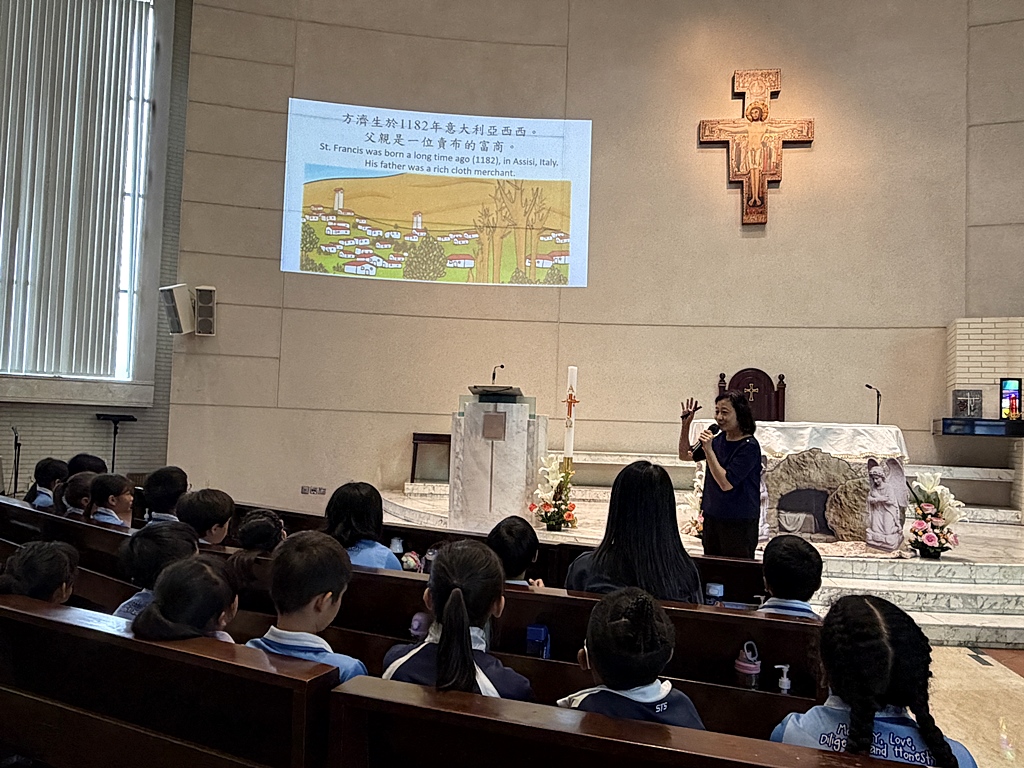 為紀念亞西西聖方濟逝世八百週年,教宗良十四世宣布由2026年1月10日至2027年1月10日為「聖方濟特殊禧年」。二年級同學於四月十五日(三)到聖方濟堂參與朝聖活動。導賞員向同學介紹聖堂的歷史和主保聖人聖方濟亞西西等。同學們除了能欣賞聖堂的建築特色,更認識了聖方濟的事跡及聖堂的設計和擺設。聖堂內的壁畫介紹了聖人的事蹟,加深了同學對聖人和信仰的了解,學習如何以謙遜和愛心待人處事。