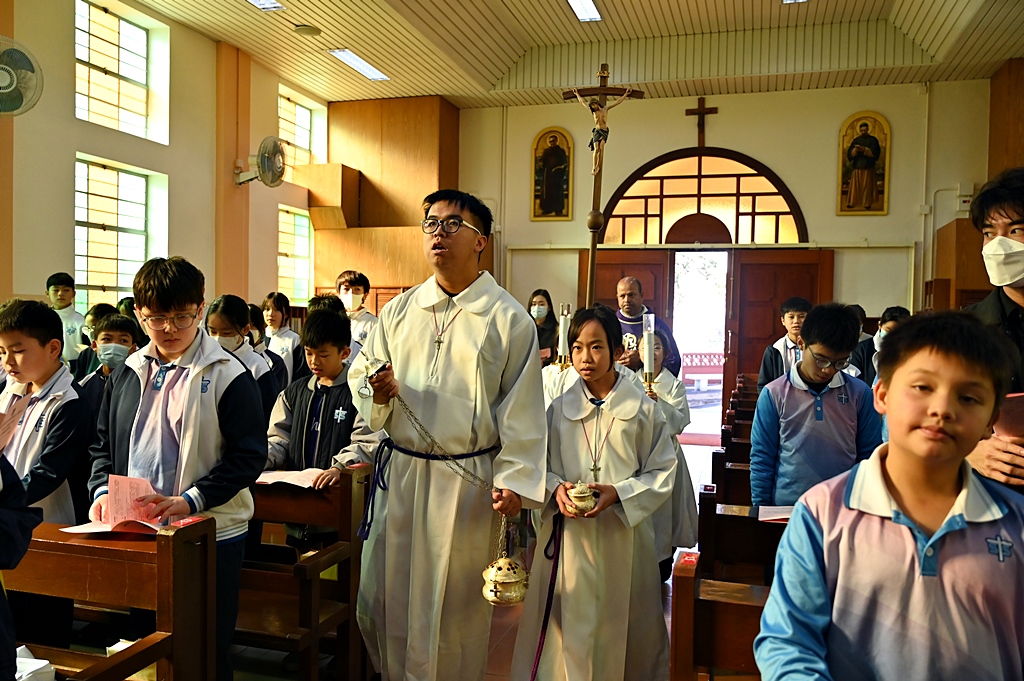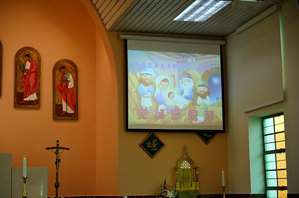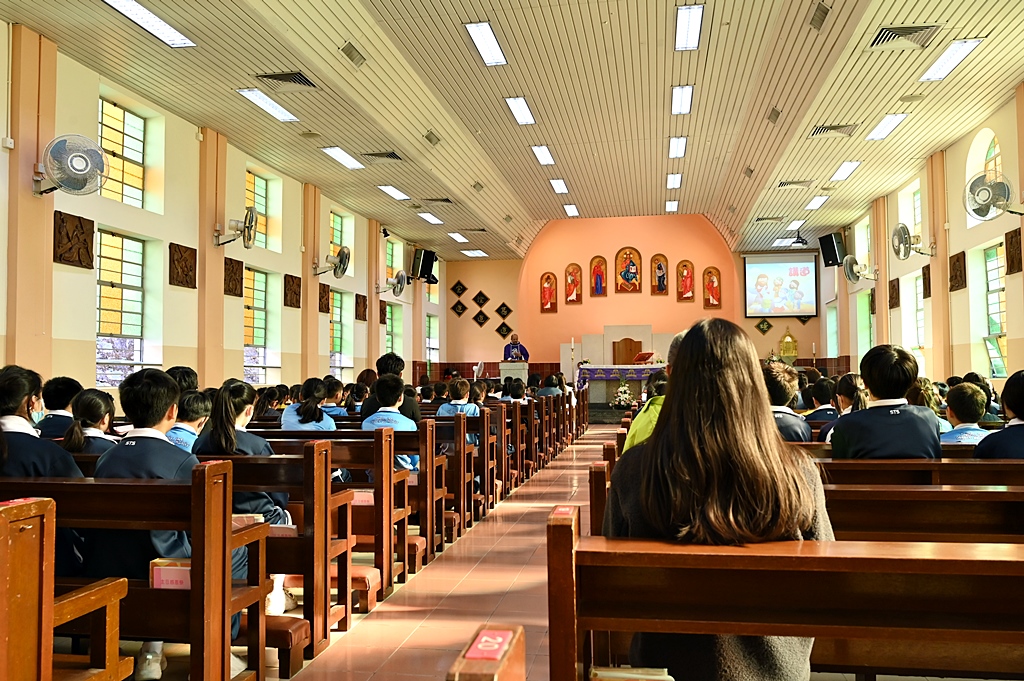 本年度的聖誕感恩祭已於12月16日(二) 順利在聖心堂舉行。感恩祭由校監潘子光神父主禮,馮校長、公教家長及全體師生一同出席。潘神父於講道中勉勵我們,我們到聖堂祈禱,慶祝耶穌的「生日」,是讓我們明白耶穌是天主給我們的禮物。耶穌的降生便是表達了天主愛我們,所以我們也要愛天主、愛兄弟姊妹。