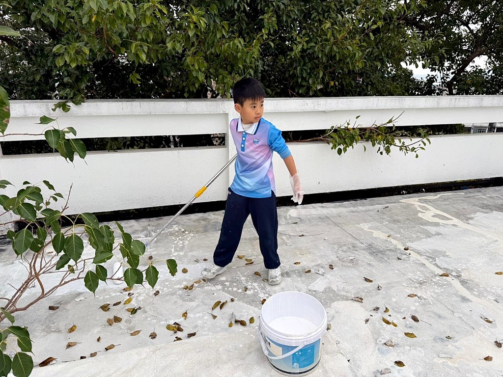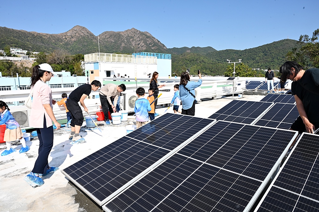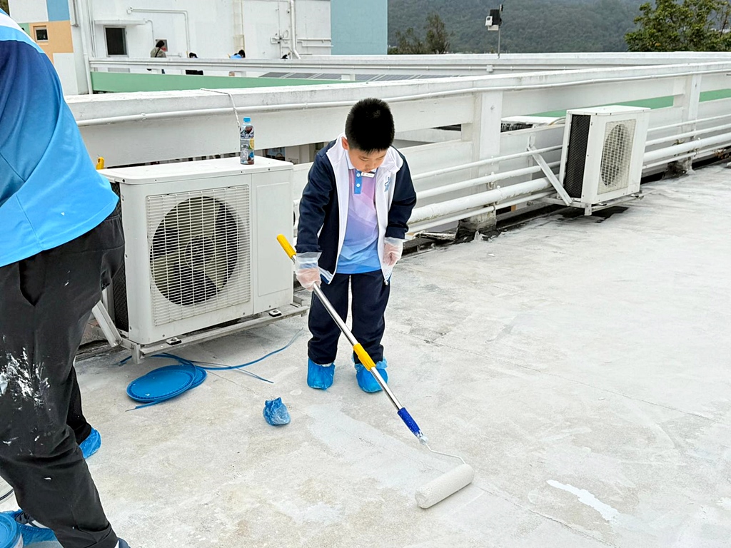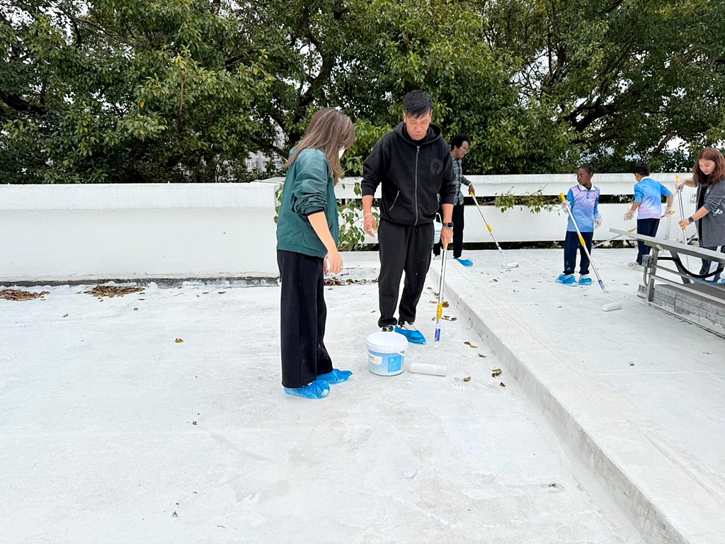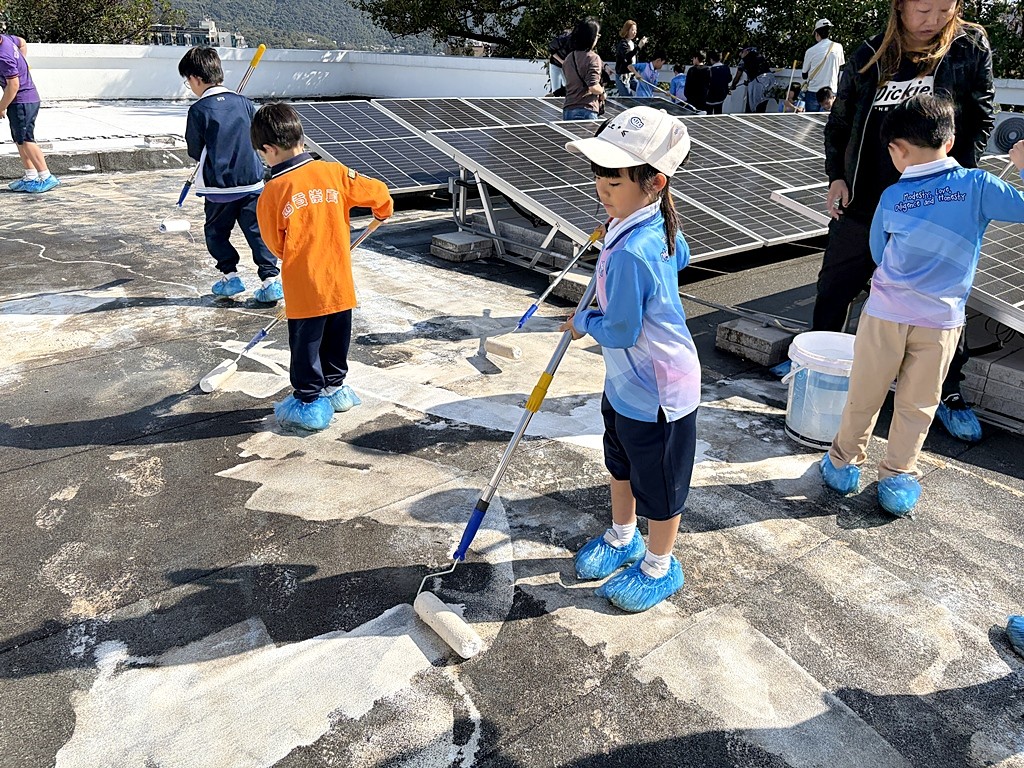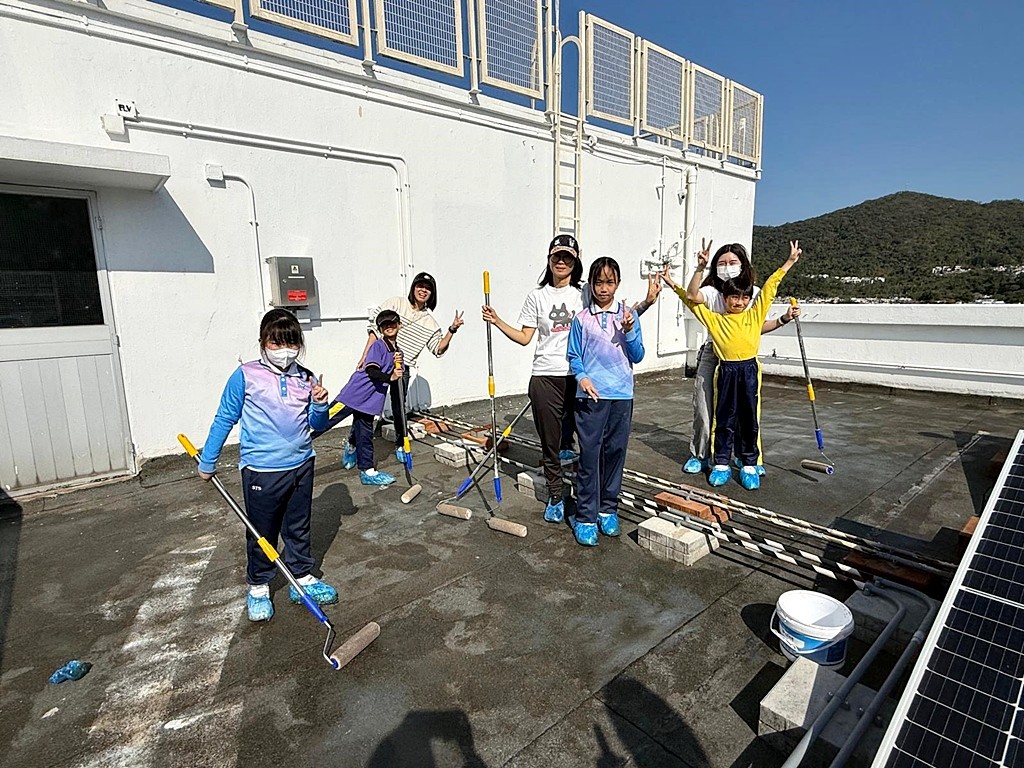 本年度再次邀請家長與學生共同參與「親子動手打造減碳校園活動」,是次活動接近有100人參加,親手為校園天台塗上環保塗層,透過實際行動體現低碳生活理念。
