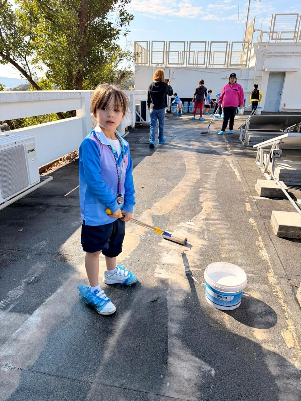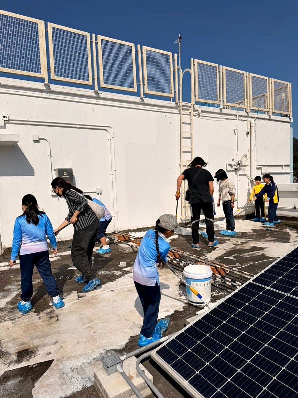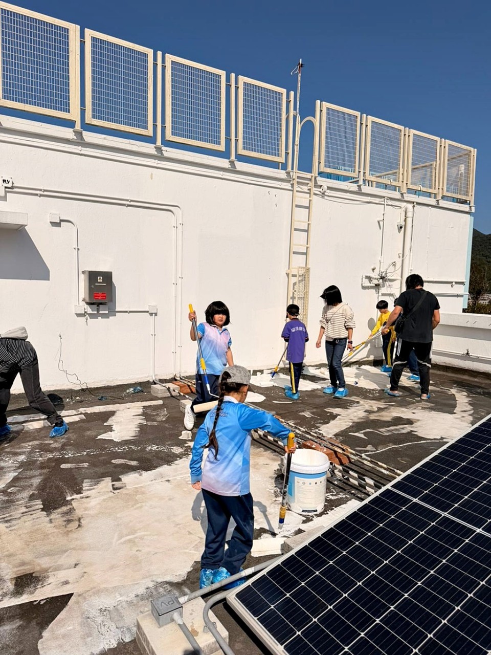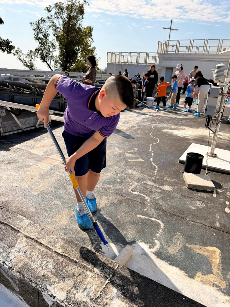 本年度再次邀請家長與學生共同參與「親子動手打造減碳校園活動」,是次活動接近有100人參加,親手為校園天台塗上環保塗層,透過實際行動體現低碳生活理念。
