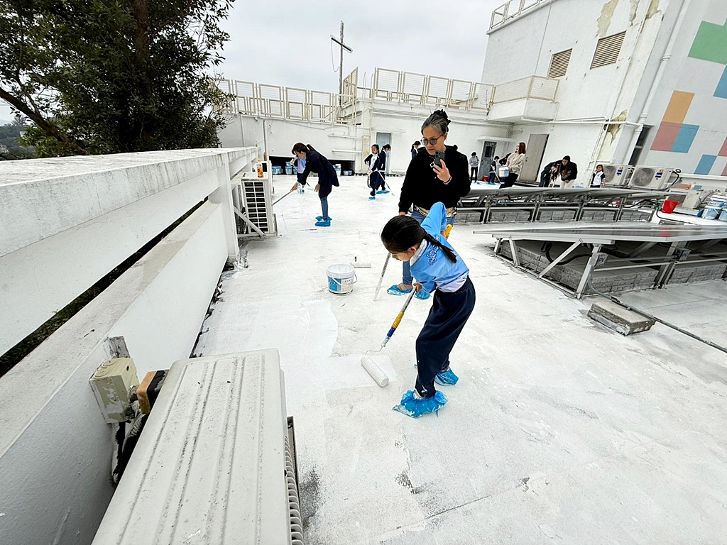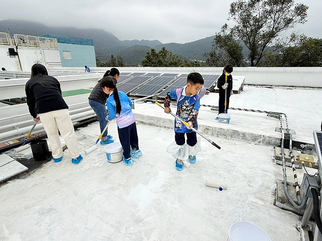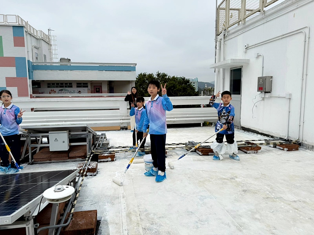 為深化環境保育教育,本校與「零碳足跡」合作及得到「i2Cool」公司慷慨贊助,引進創新降溫塗層技術。