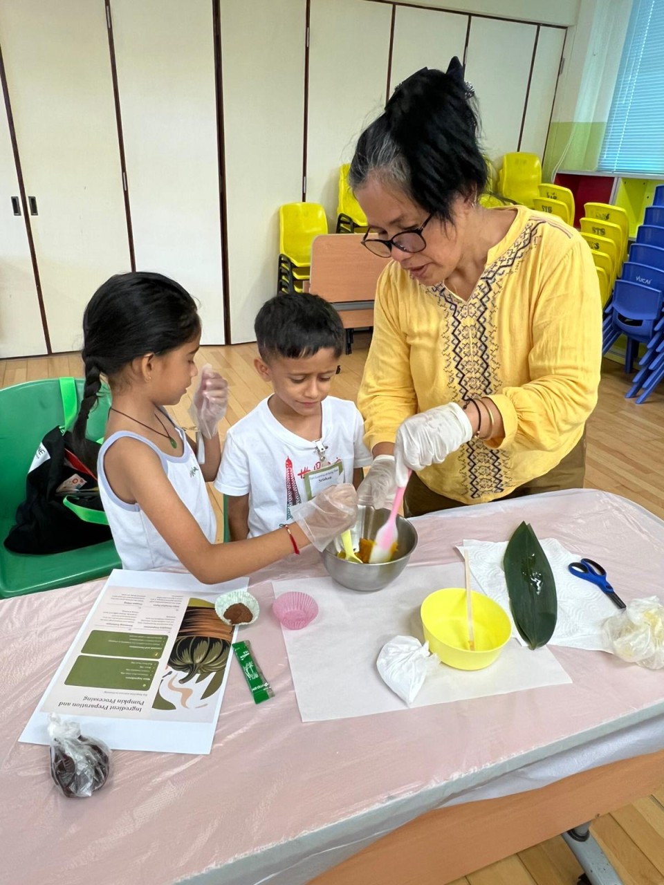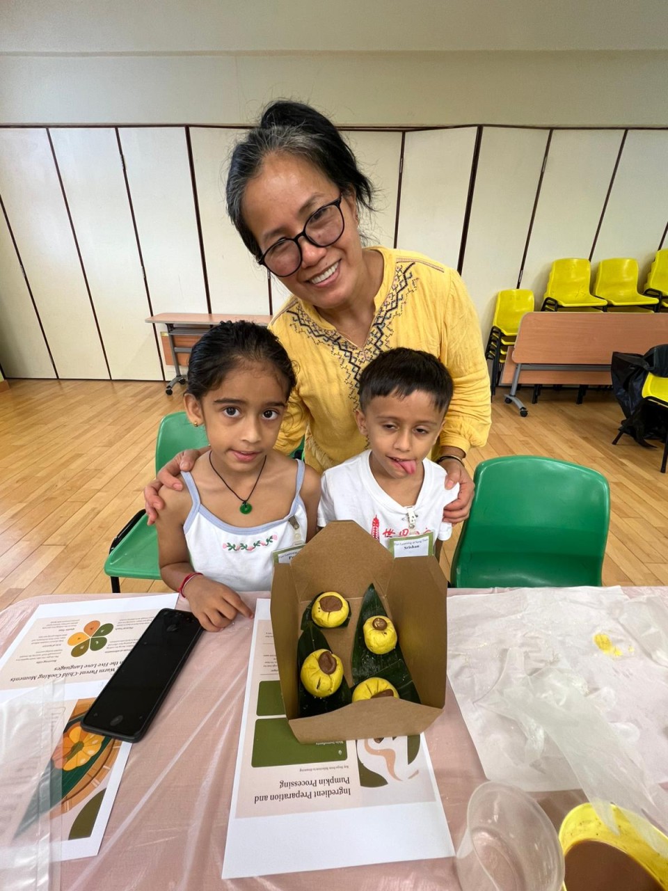 On 11th October, kindergarten students and their parents worked together to make Cha Guo using healthy mashed pumpkin for the outer layer and sweet red bean paste for the filling. This let everyone appreciate the joy of making traditional food while enhancing parent-child interaction and collaboration.