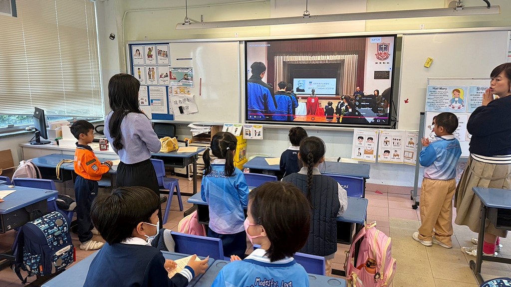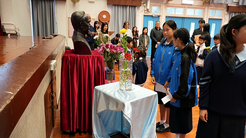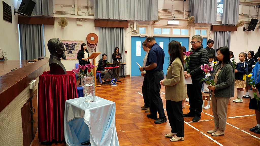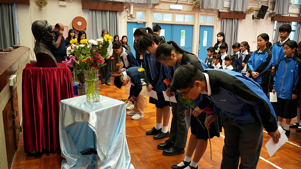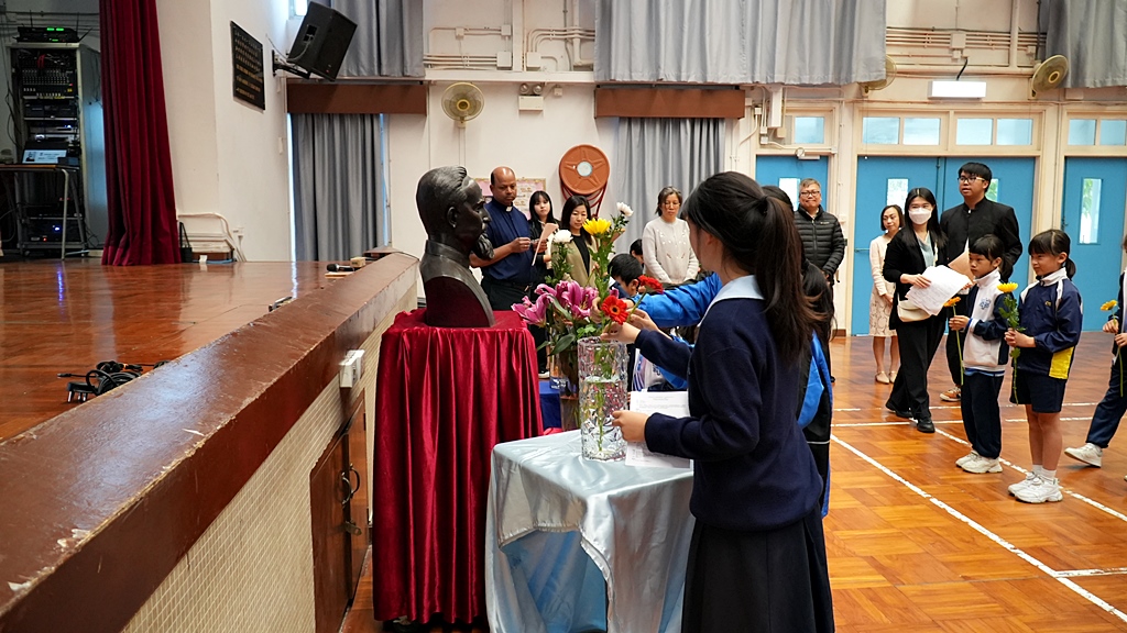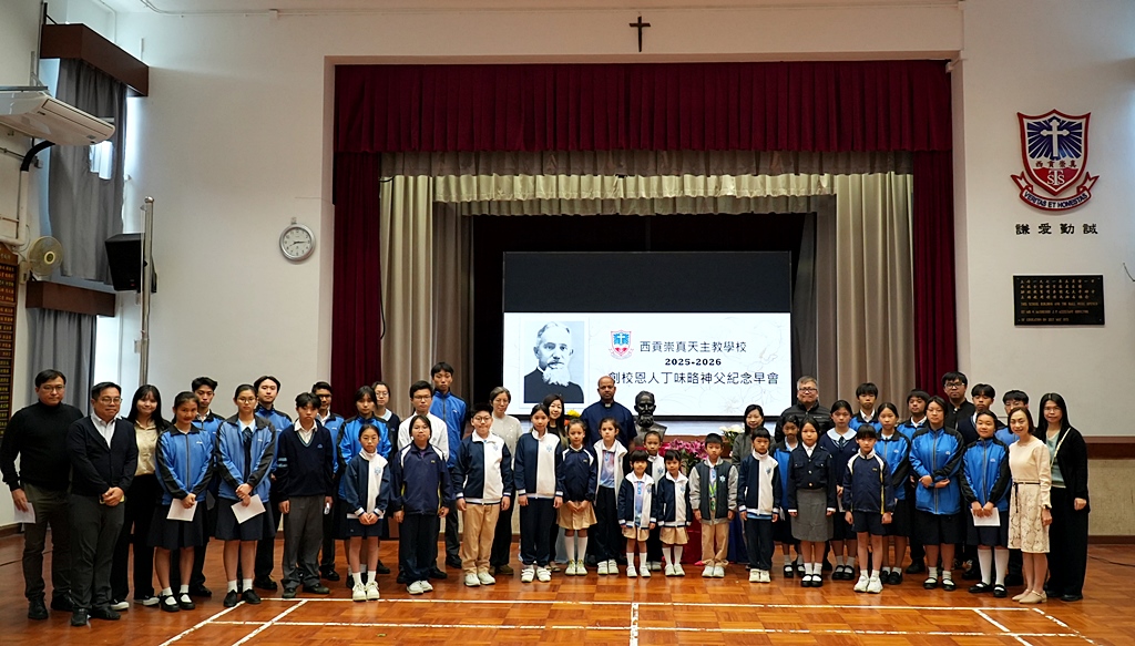 西貢崇真天主教學校由丁味略神父(Rev. TERUZZI, Emilio PIME)在1924年創立。為向丁神父表達感恩之情,本星期三(11月26日)於西貢崇真天主教學校(中學部)禮堂舉行謝恩祈禱及獻花紀念儀式,由校監潘子光神父主持,中小學部師生一同參與。