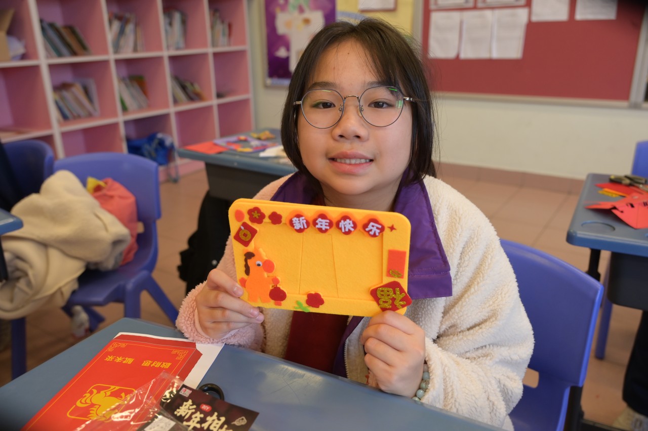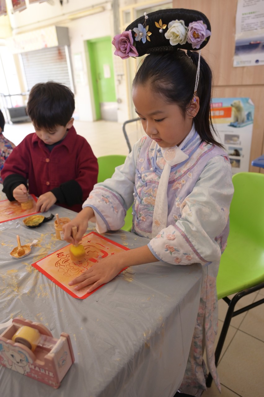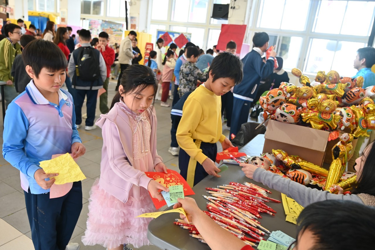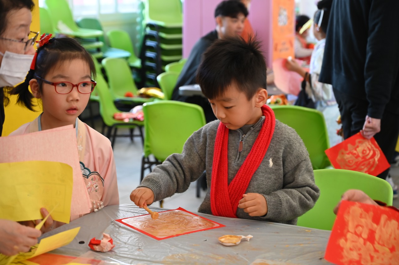 當日的活動內容豐富多彩:在「福傳揮春」與「新春剪紙樂」中,同學們揮灑筆墨、展現巧思;在「非遺薈萃賀新春」裏,大家親手體驗拓印、品嚐糖葱餅,領略非物質文化遺產的獨特風采。高年級同學主理的「崇真年宵市場」,更充分鍛鍊了組織與協作能力。