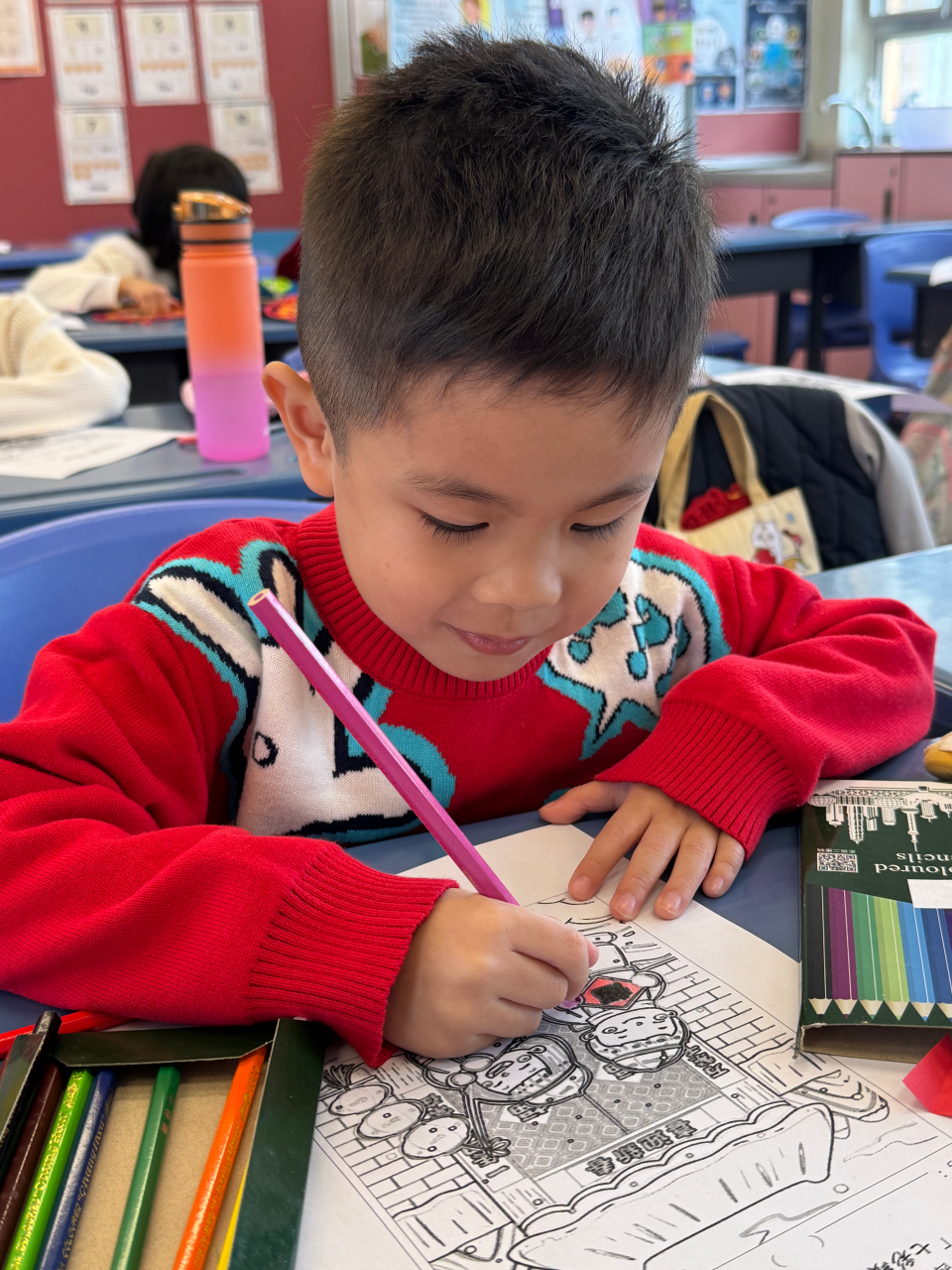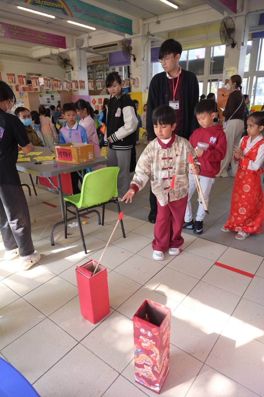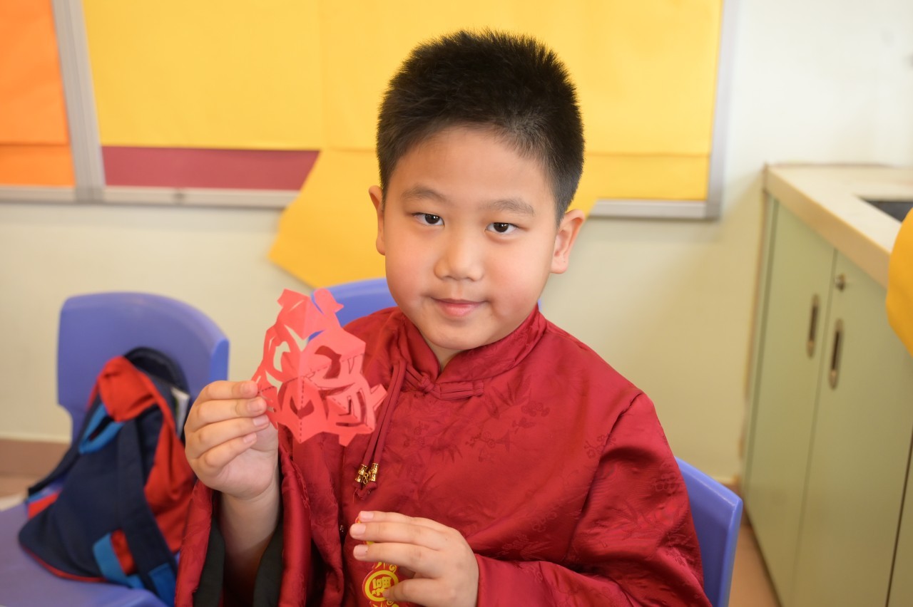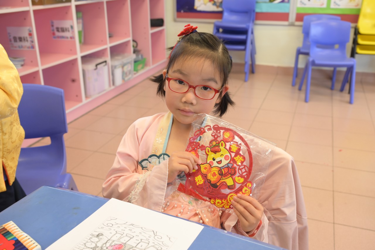當日的活動內容豐富多彩:在「福傳揮春」與「新春剪紙樂」中,同學們揮灑筆墨、展現巧思;在「非遺薈萃賀新春」裏,大家親手體驗拓印、品嚐糖葱餅,領略非物質文化遺產的獨特風采。高年級同學主理的「崇真年宵市場」,更充分鍛鍊了組織與協作能力。