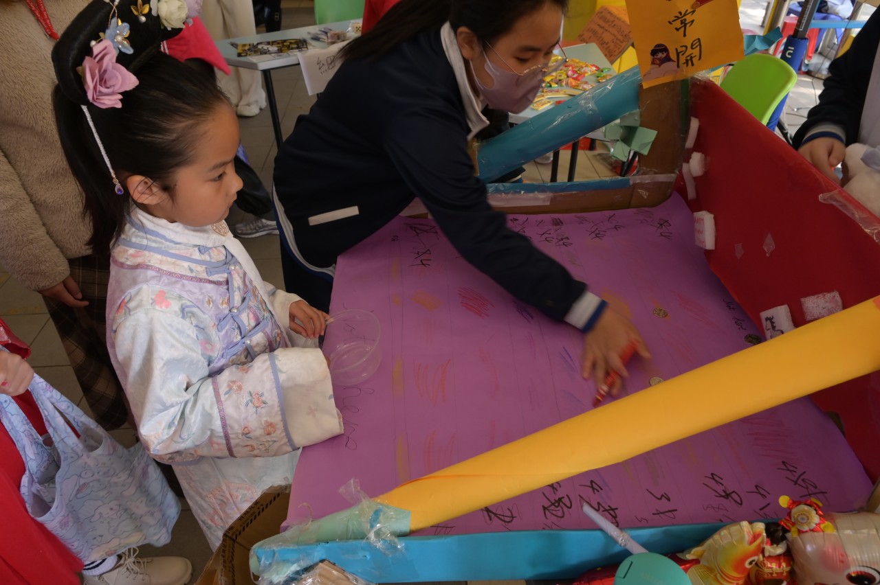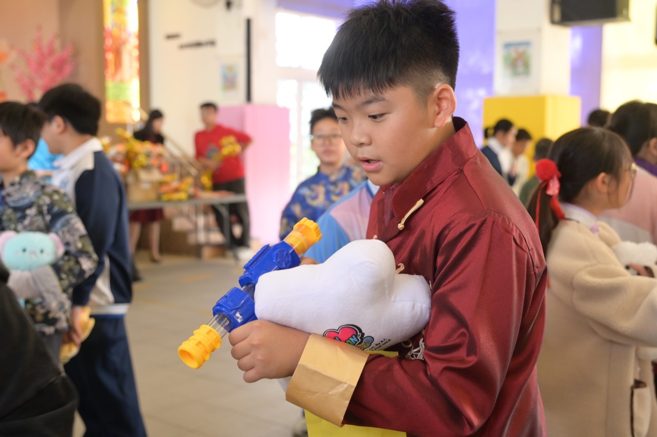 The activities were rich and varied: in " Blessings-spreading Spring Couplets " and "New Year Paper-Cutting Fun," students showcased their calligraphy and creativity. In "A Showcase of Intangible Cultural Heritage," everyone experienced the unique charm of cultural heritage firsthand by trying activities like ink rubbings and tasting candy onion pancakes. The "Sung Tsun New Year Fair" was managed by senior students, who fully exercised their organizational and collaborative skills.