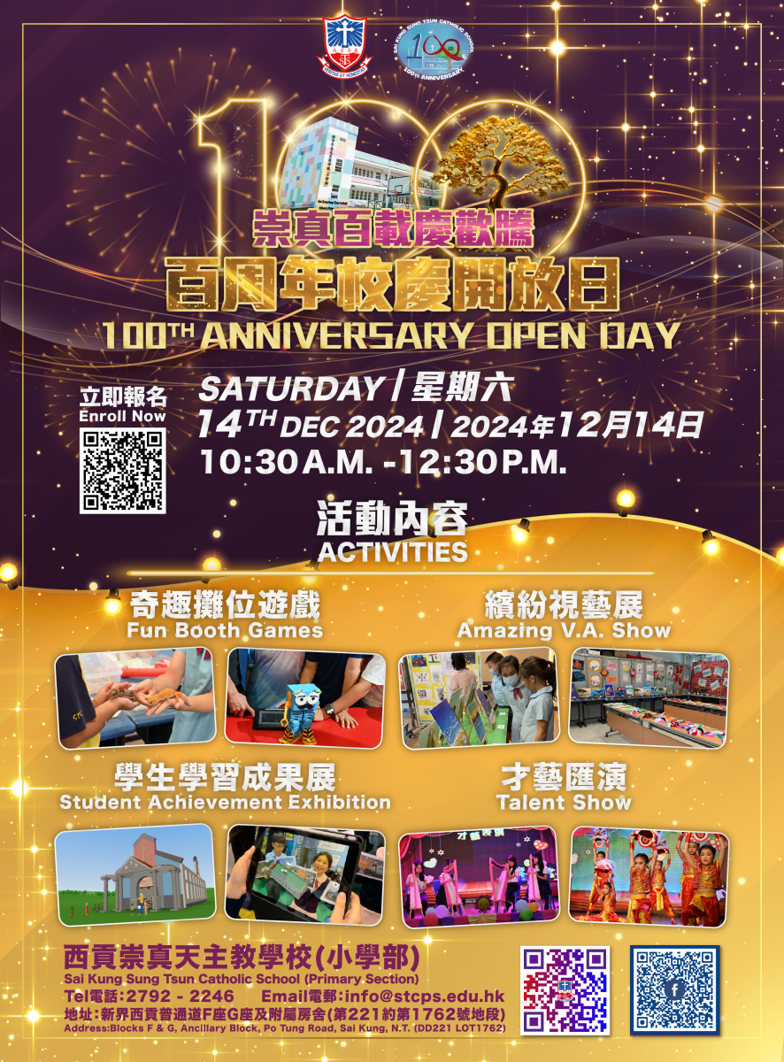 崇真100周年校慶開放日將於2024年12月14日(六)10:30am-12:30pm舉行。