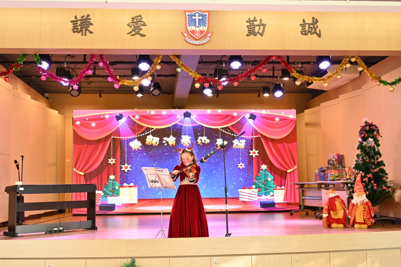 慶祝聖誕活動日當天,校方舉辦了「樂韻演奏迎聖誕」、「競技疊杯比賽」和「誰是幸運兒」三個活動。「樂韻演奏迎聖誕」讓全校的音樂小天才一顯身手,表演項目包括豎琴、小提琴獨奏、長笛獨奏、鋼琴獨奏、UKULELE 合奏和電結他合奏,最後全校更一起合唱聖誕歌,為校園帶來濃厚的聖誕氣氛!接下來由一至六年級的疊杯隊成員為大家進行競技疊杯表演,年紀小小的同學以極快的速度表演不同的疊杯技巧,讓大家看得目瞪口呆!到了同學們期待已久的「誰是幸運兒」抽獎活動!每位同學除均獲贈聖誕禮物包外,均有機會透過抽獎得到校方預備的大獎,然後每班同學與班主任一起合影留念。