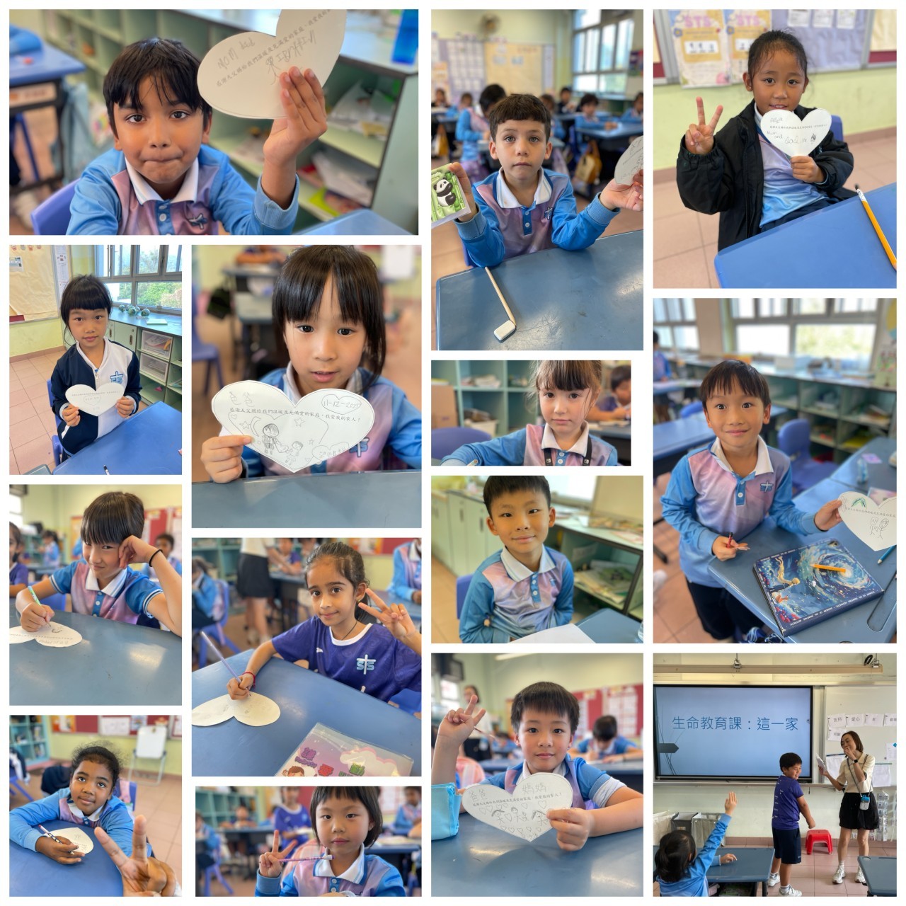 如何建造一個能經得起風吹雨打,成為孩子避風港灣的家?依靠的是家人彼此之間的關愛。成長課透過影片、互動遊戲,讓學生明白每個家庭總有或多或少的不同,但都是獨一無二的。而更重要的是明白家庭成員彼此要關心、愛護及珍惜。孩子們亦透過製作心意卡,向家人表達愛心及謝意,從小培養把愛表達出來的習慣。