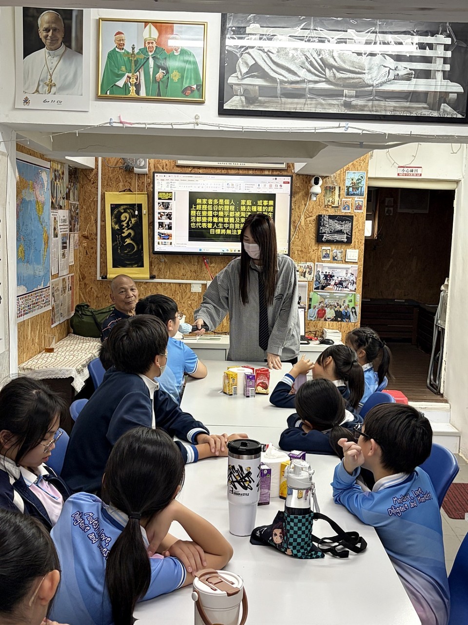 同學們有幸見到「慈悲香港食堂」的創辦人、有「廟街神父」之稱的胡頌恆神父。神父講解此食堂的由來,透過互助和祈禱,讓社會上有需要的人得到尊重和安慰。
