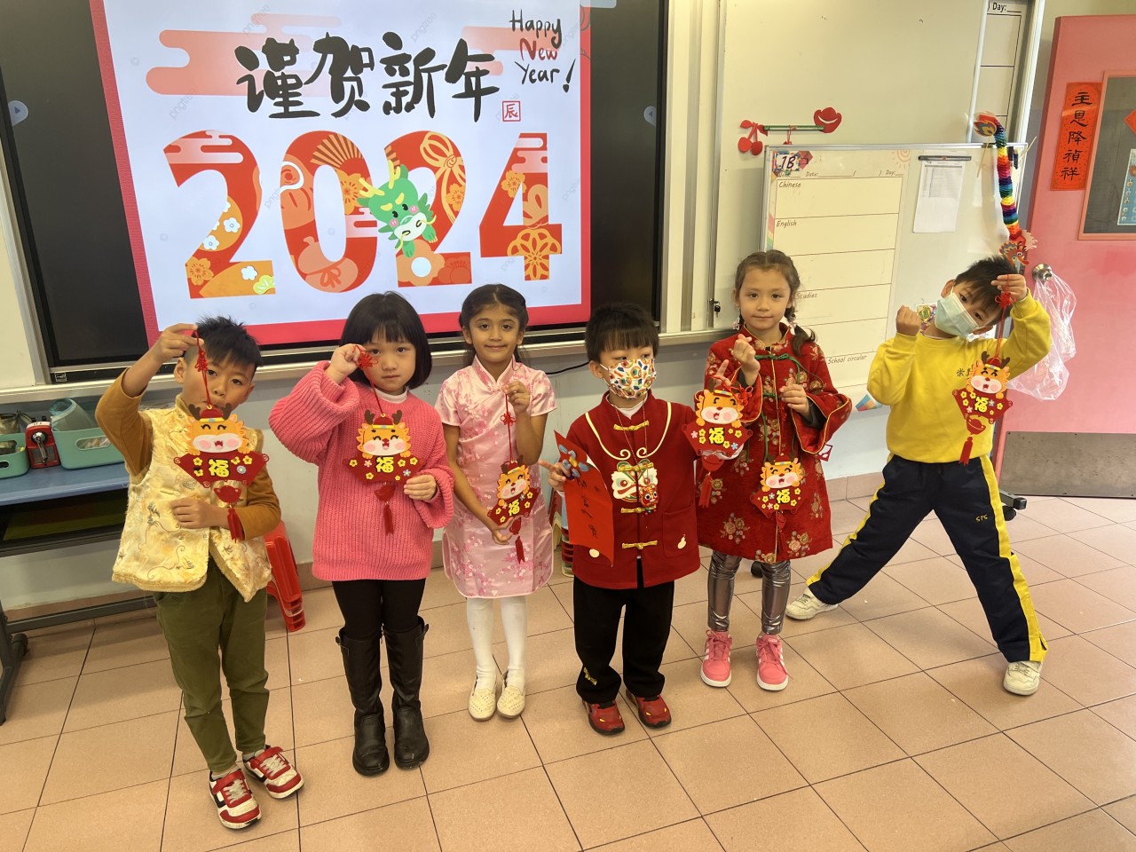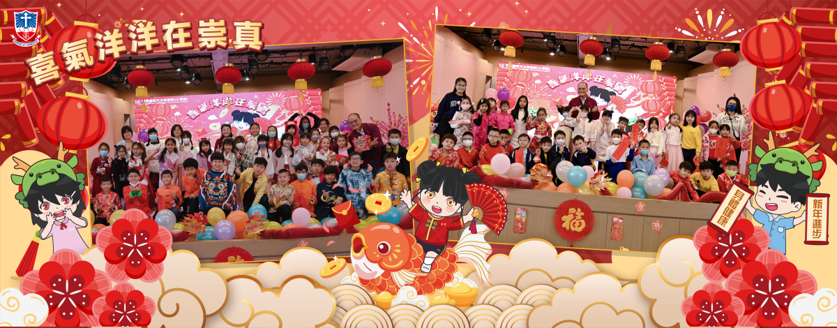 近新送舊,送兔迎龍! 本校於2024年2月6日舉辦了「喜氣洋洋在崇真」特別學習日,讓學生透過設計、製作及主持賀年遊戲攤位、寫揮春、剪紙、製作賀年飾物、進行課室大掃除等,認識傳統中國文化。另外,家長義工亦幫忙指導學生親手製作湯圓,並即場烹製湯圓與全校學生享用,以增添農曆新年的熱鬧歡樂氣氛,共慶團圓。