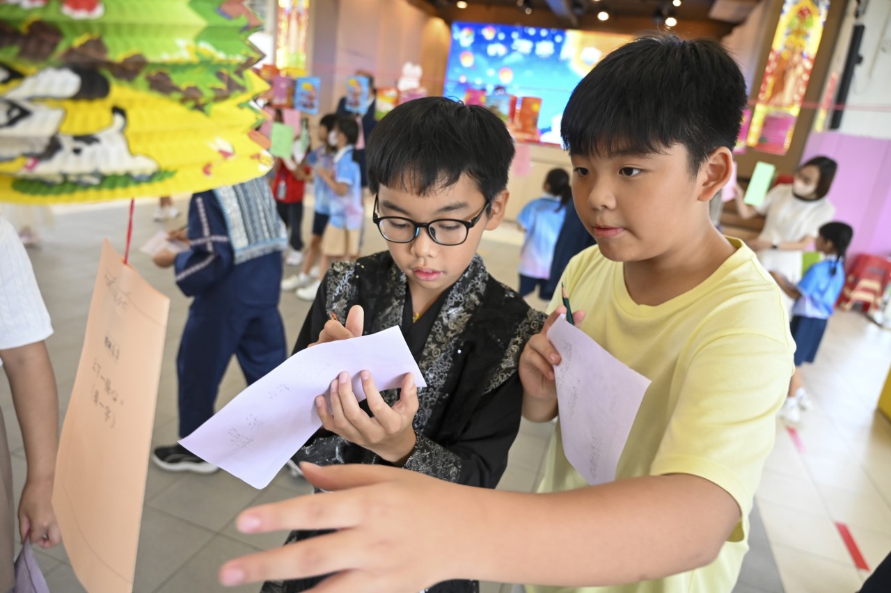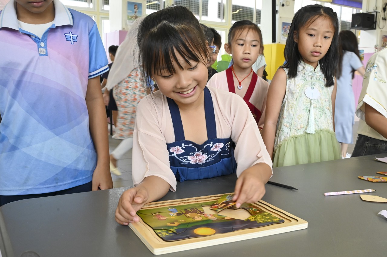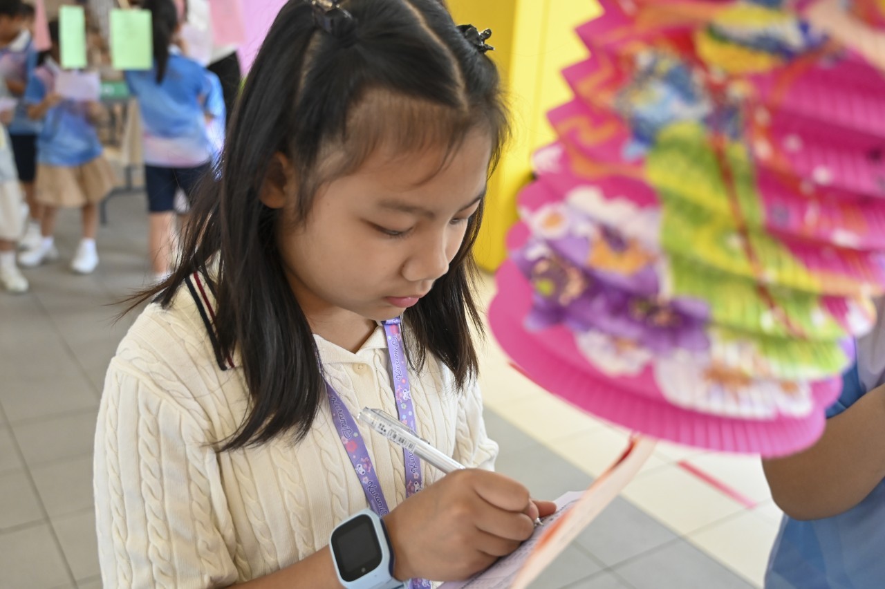 Our school successfully held the Mid-Autumn Festival celebration on 6th October. The event provided students with a series of diverse and engaging activities, allowing them to celebrate joyfully while gaining a deeper understanding of this long-standing traditional Chinese festival. The day was filled with a rich variety of events, including riddle-solving, lantern-making, and multiple booth games infused with Mid-Autumn cultural elements. The campus was alive with laughter and joy, creating a vibrant festive atmosphere. The students participated with great enthusiasm, fully immersing themselves in the experience. In this relaxed and enjoyable environment, they showcased their creativity and passion for learning, profoundly experiencing the depth and unique charm of traditional culture.