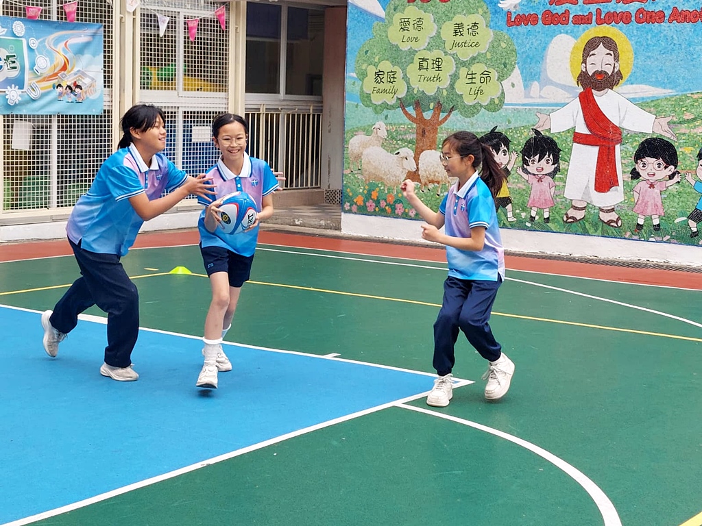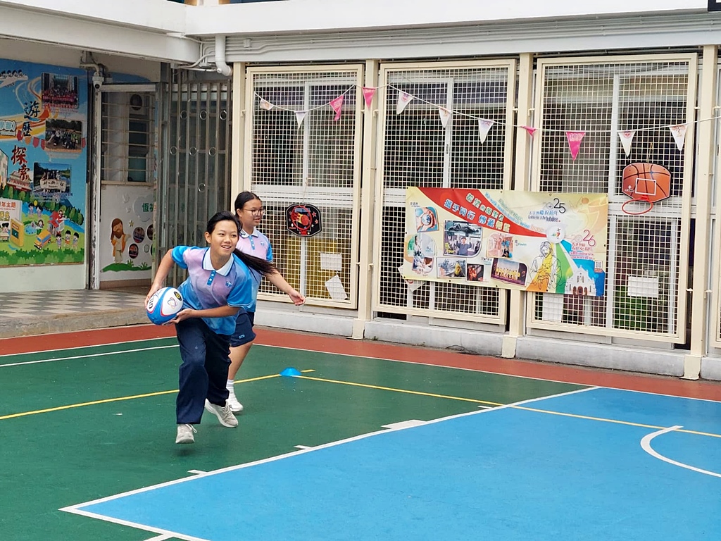 四至五年級的同學有機會參加欖球總會舉辦的欖球體驗課,同學們都玩得很開心呢!