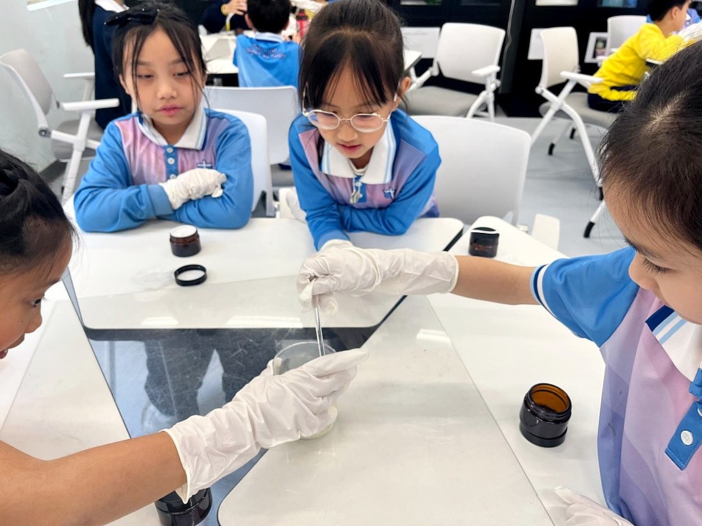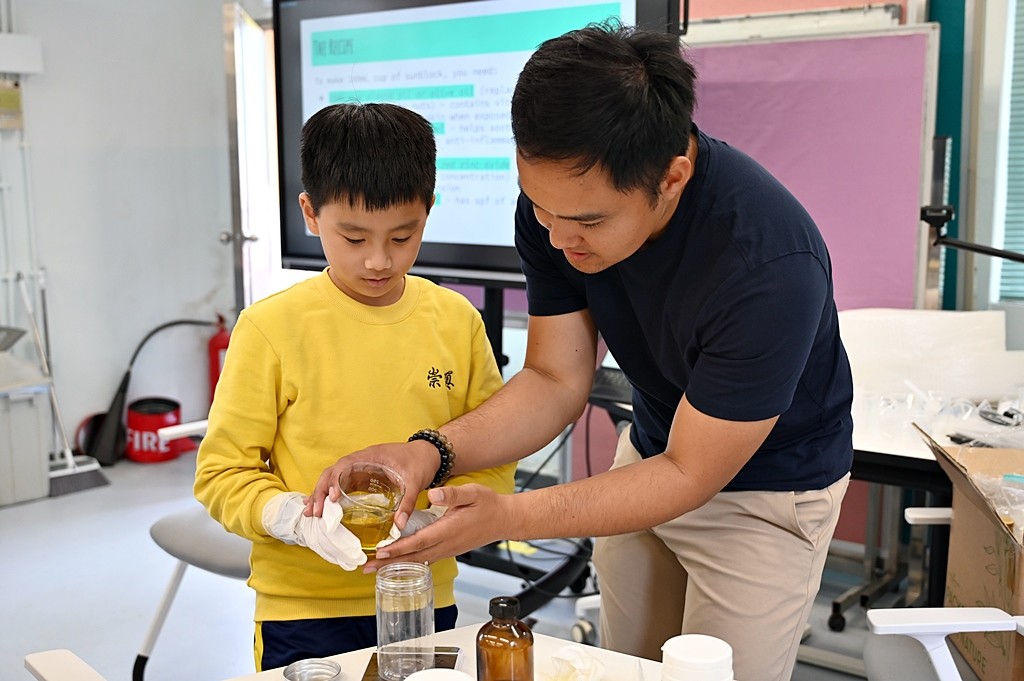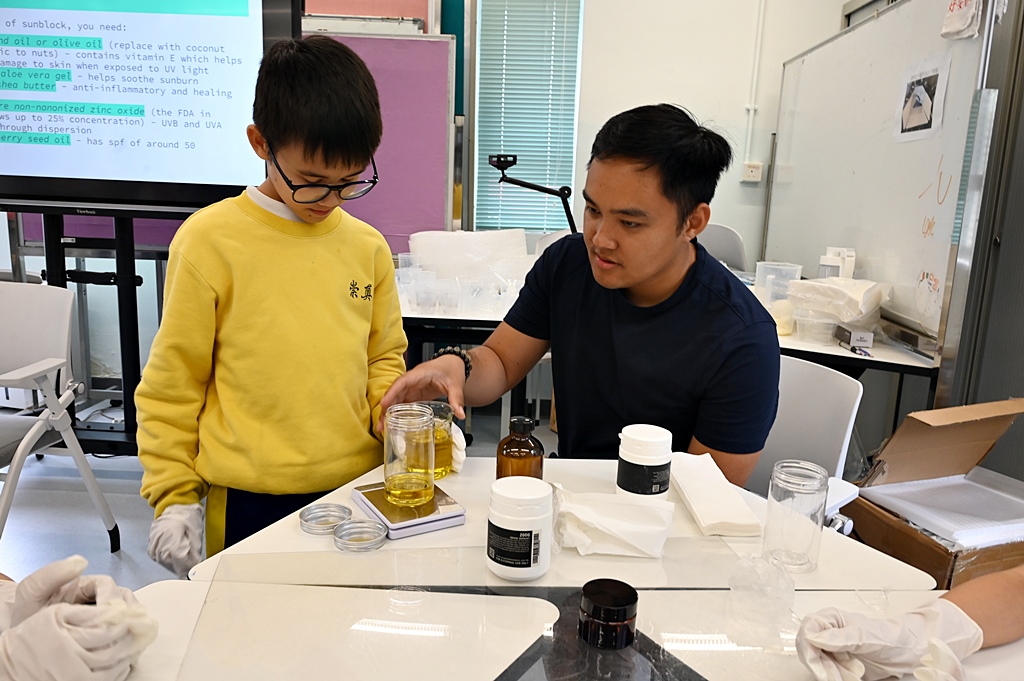 在2月中的課程裡,學生學習製作海洋環境友善產品–太陽油。學生稍後亦會有海洋⽣態系統與保護 –淨灘活動及⿂類標本介紹及製作。藉此提升學生對海洋生態環境保育的意識。