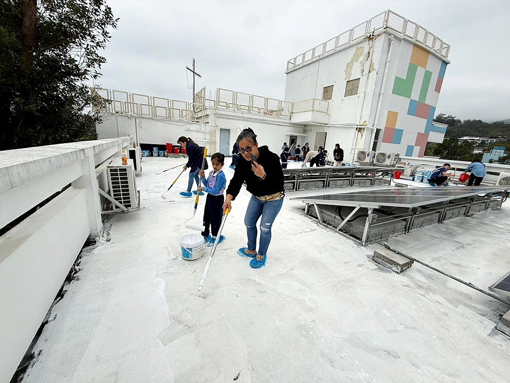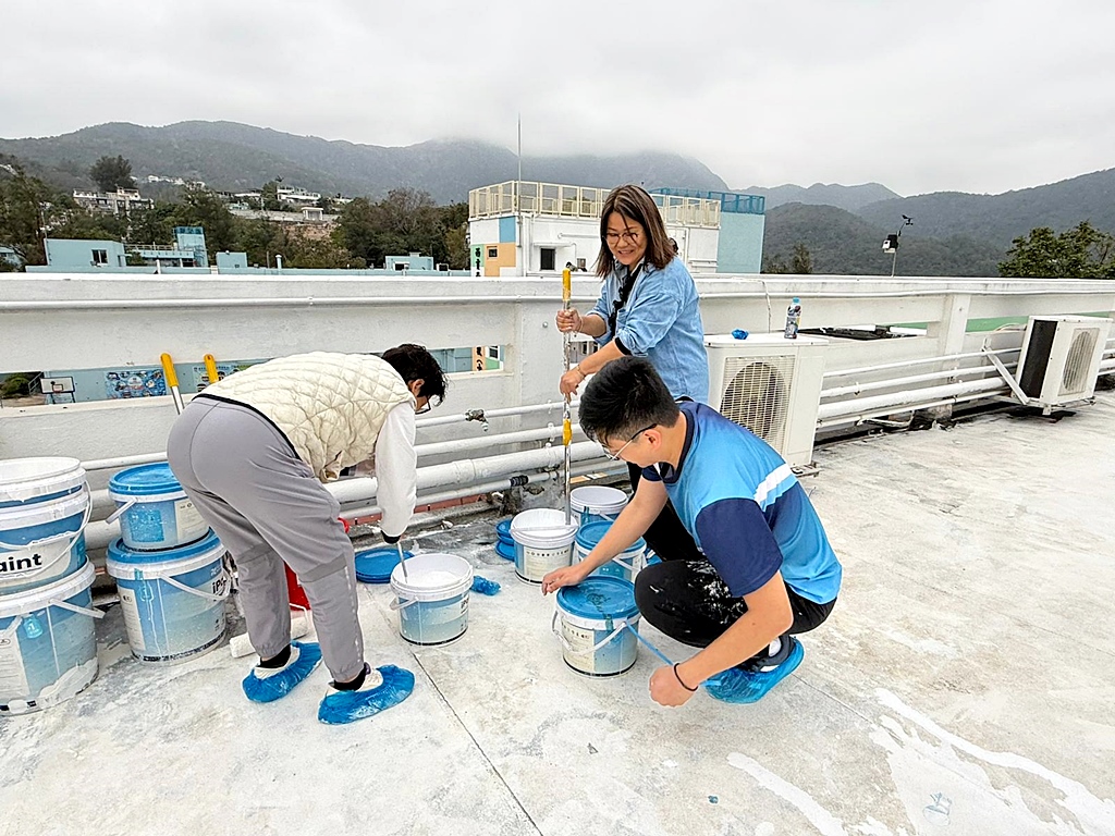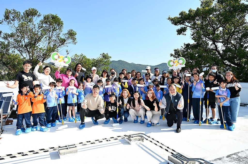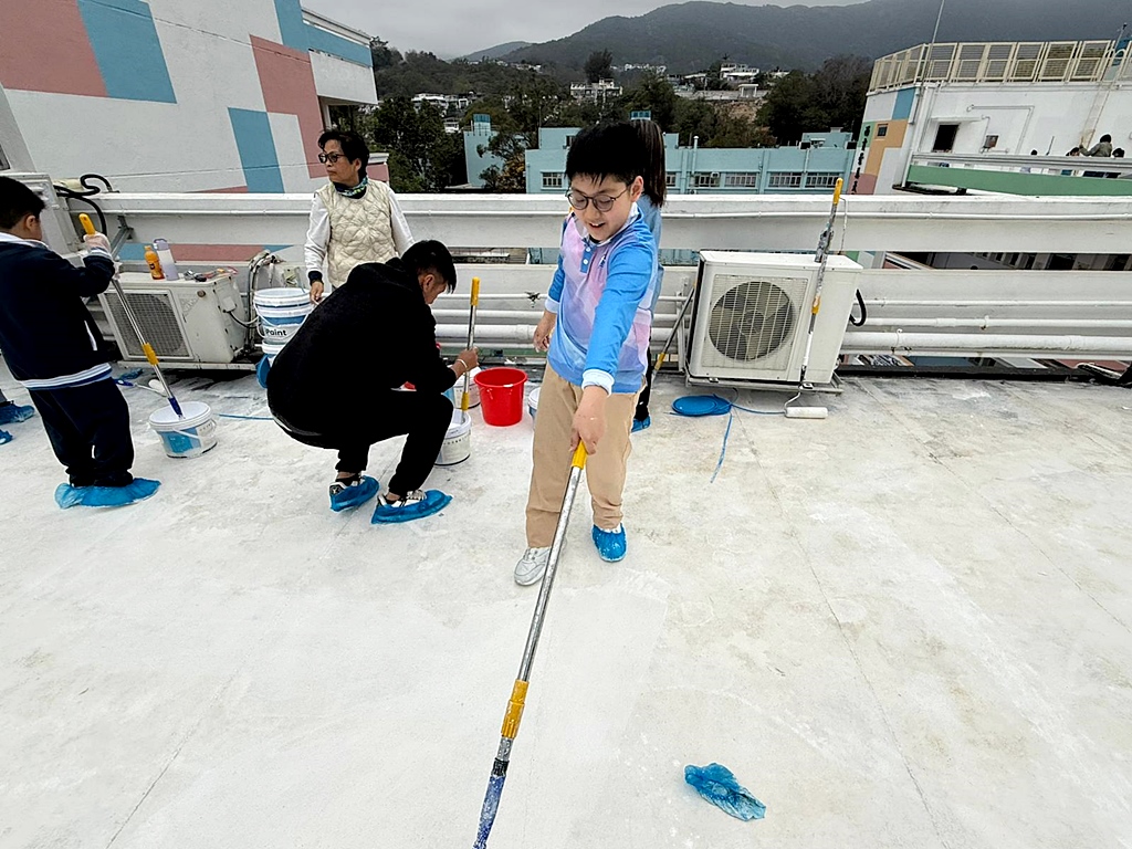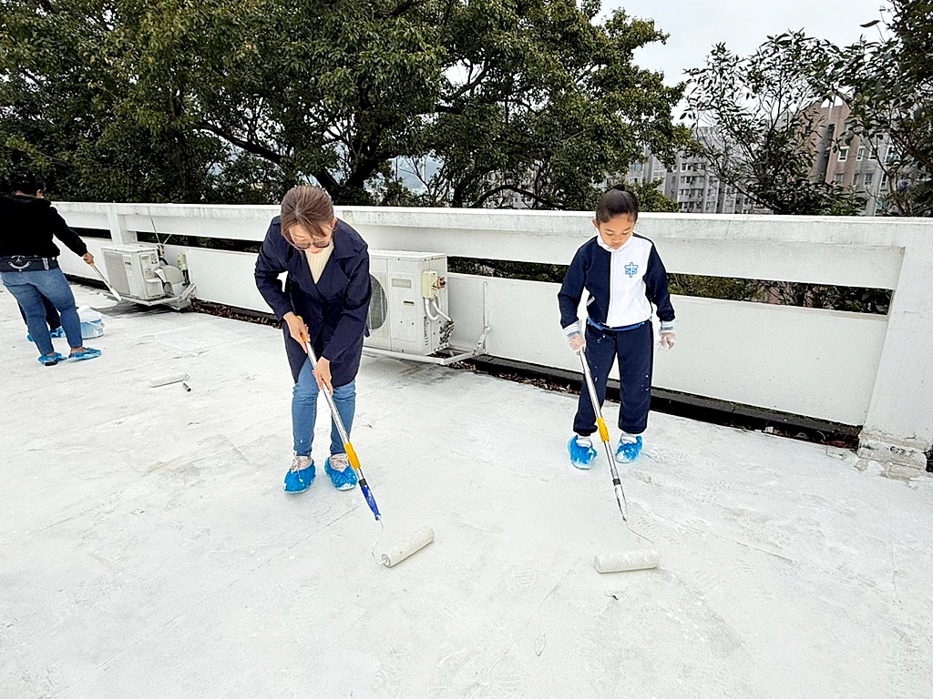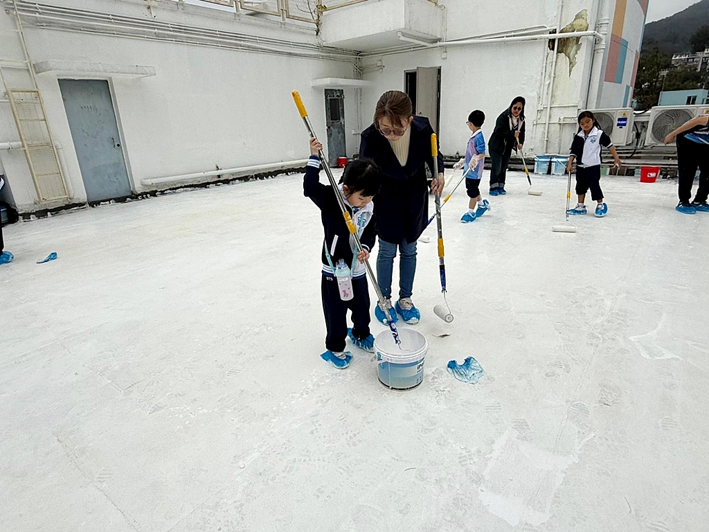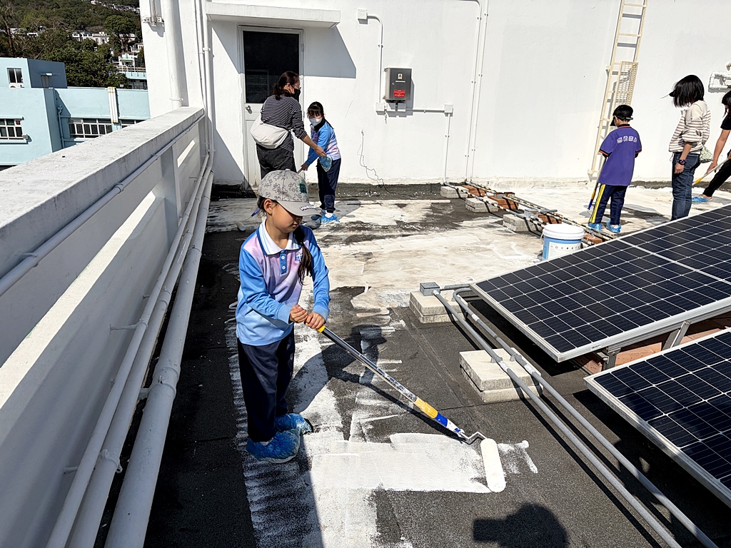 本年度再次邀請家長與學生共同參與「親子動手打造減碳校園活動」,是次活動接近有100人參加,親手為校園天台塗上環保塗層,透過實際行動體現低碳生活理念。
