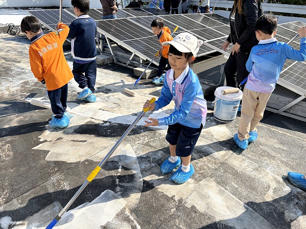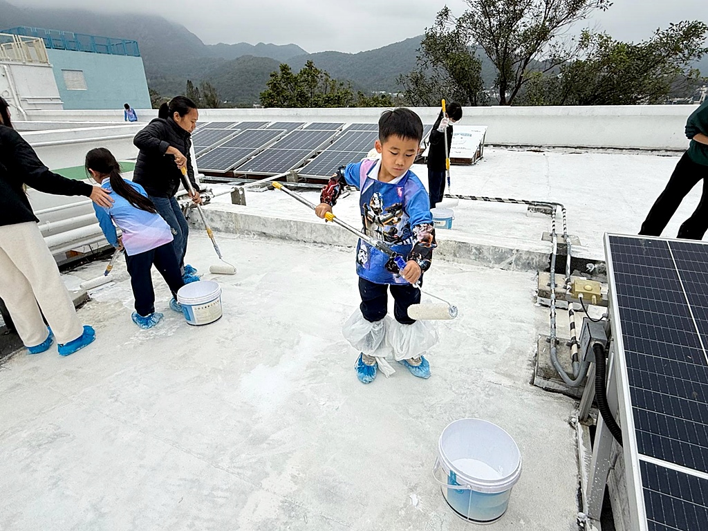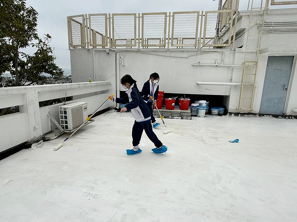 為深化環境保育教育,本校與「零碳足跡」合作及得到「i2Cool」公司慷慨贊助,引進創新降溫塗層技術。