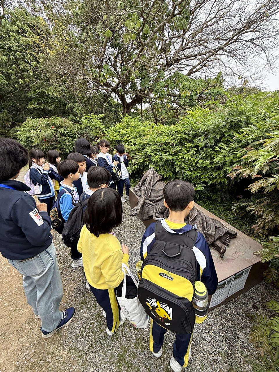 The guides introduced the history of Yim Tin Tsai, the villagers’ simple traditional way of life, and the island’s valuable natural ecology. There, the students learned about the patron saint, St. Joseph, and gained a deeper understanding of the hardships and contributions of Fr. Joseph Freinademetz in his early missionary work on the island. This helped the students appreciate the importance of Yim Tin Tsai as an early and significant center of Catholic missionary activity in Hong Kong. The students also prayed in front of the sculpture “When I Was Sick,” newly installed during last year’s Jubilee Year, expressing care and concern for the sick and the poor.