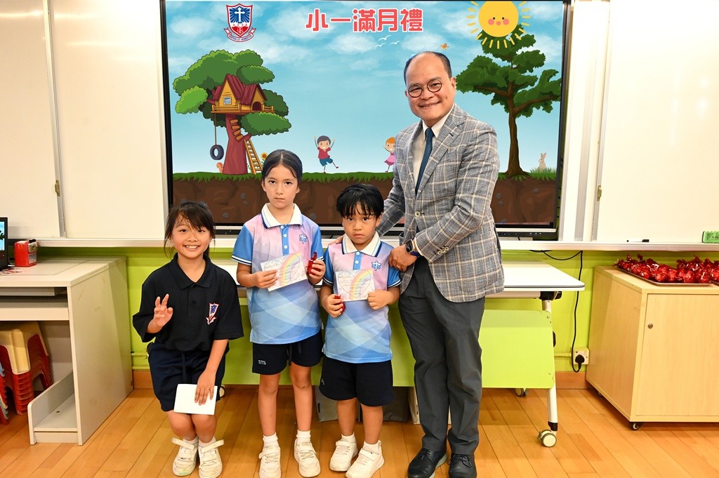 小一同學加入崇真大家庭已經一個多月了,為見證人生重要的時刻,本校於十月十四日特別為他們舉行了小一滿月禮,當天由校長派發紅雞蛋祝賀,而天使哥哥姐姐送贈心意卡以表心意。
