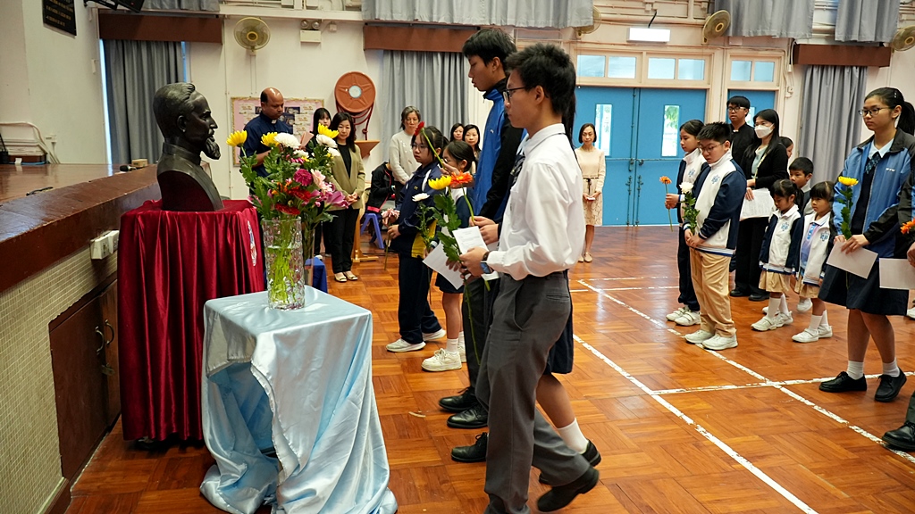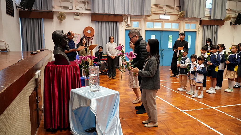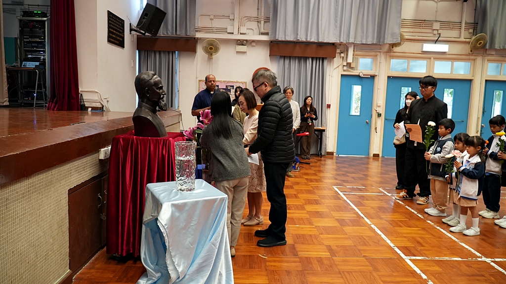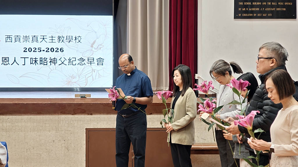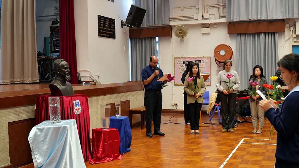 西貢崇真天主教學校由丁味略神父(Rev. TERUZZI, Emilio PIME)在1924年創立。為向丁神父表達感恩之情,本星期三(11月26日)於西貢崇真天主教學校(中學部)禮堂舉行謝恩祈禱及獻花紀念儀式,由校監潘子光神父主持,中小學部師生一同參與。