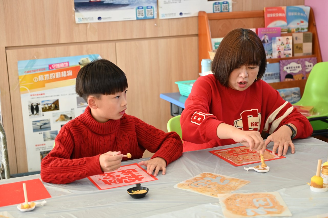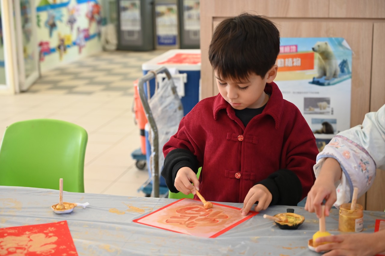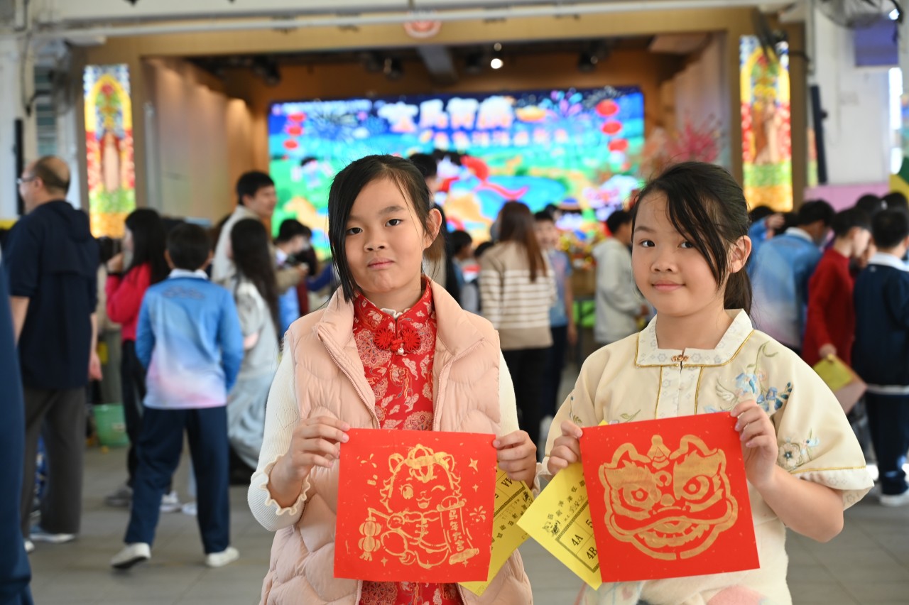 當日的活動內容豐富多彩:在「福傳揮春」與「新春剪紙樂」中,同學們揮灑筆墨、展現巧思;在「非遺薈萃賀新春」裏,大家親手體驗拓印、品嚐糖葱餅,領略非物質文化遺產的獨特風采。高年級同學主理的「崇真年宵市場」,更充分鍛鍊了組織與協作能力。