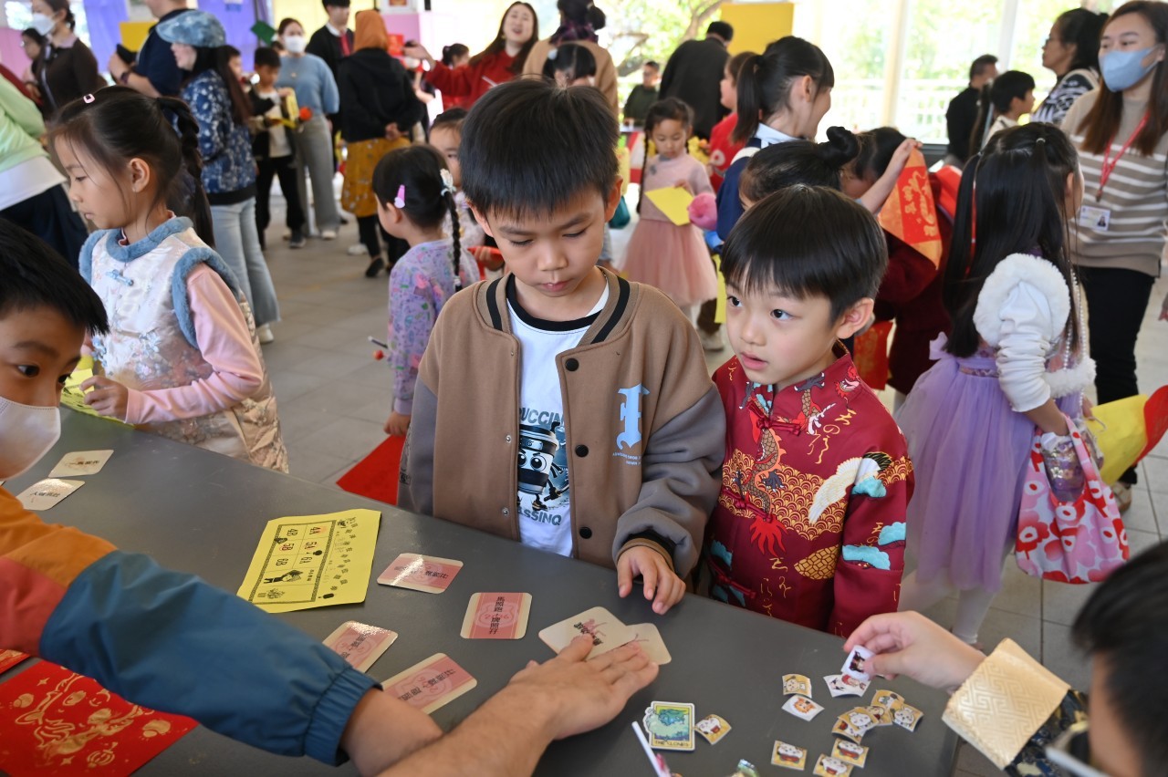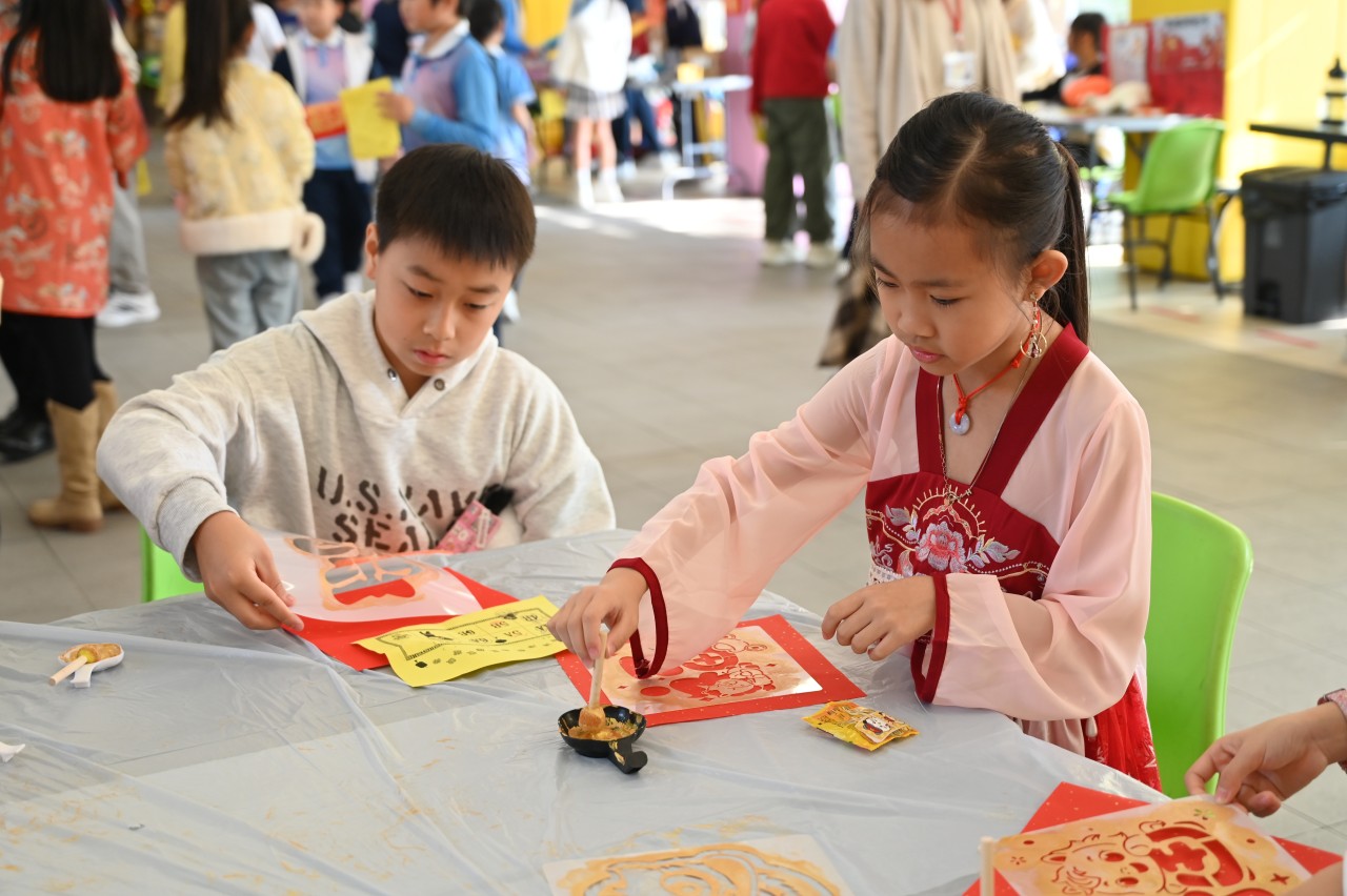 The activities were rich and varied: in " Blessings-spreading Spring Couplets " and "New Year Paper-Cutting Fun," students showcased their calligraphy and creativity. In "A Showcase of Intangible Cultural Heritage," everyone experienced the unique charm of cultural heritage firsthand by trying activities like ink rubbings and tasting candy onion pancakes. The "Sung Tsun New Year Fair" was managed by senior students, who fully exercised their organizational and collaborative skills.